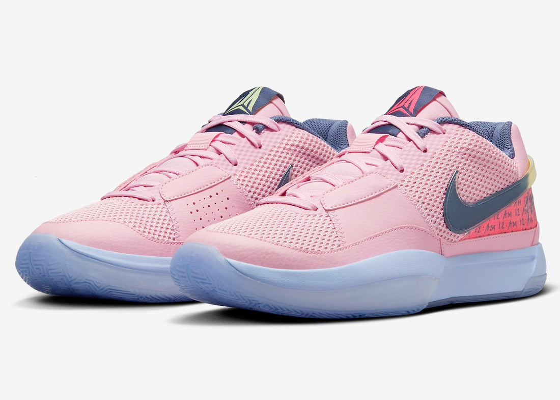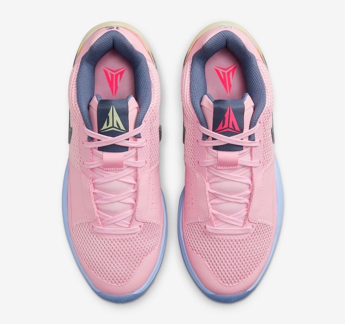 Get ready to step into a world of style and comfort with the Nike Ja 1 Day One. This remarkable shoe features a stunning color combination of Medium Soft Pink, Cobalt Bliss, Citron Tint, and Diffused Blue, making it a true fashion statement.