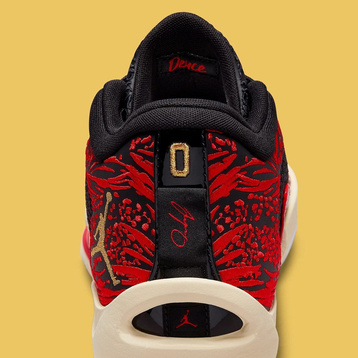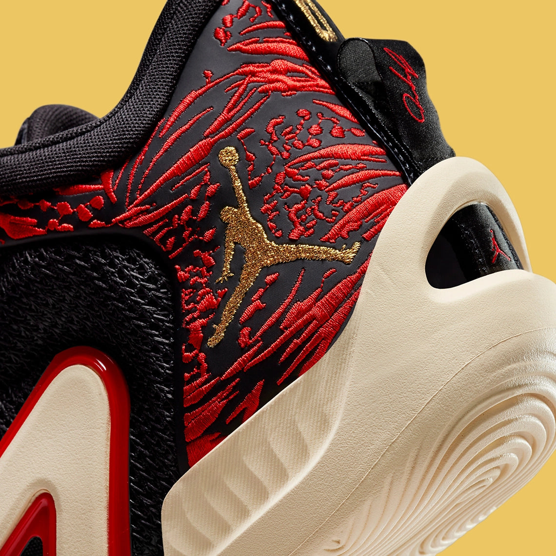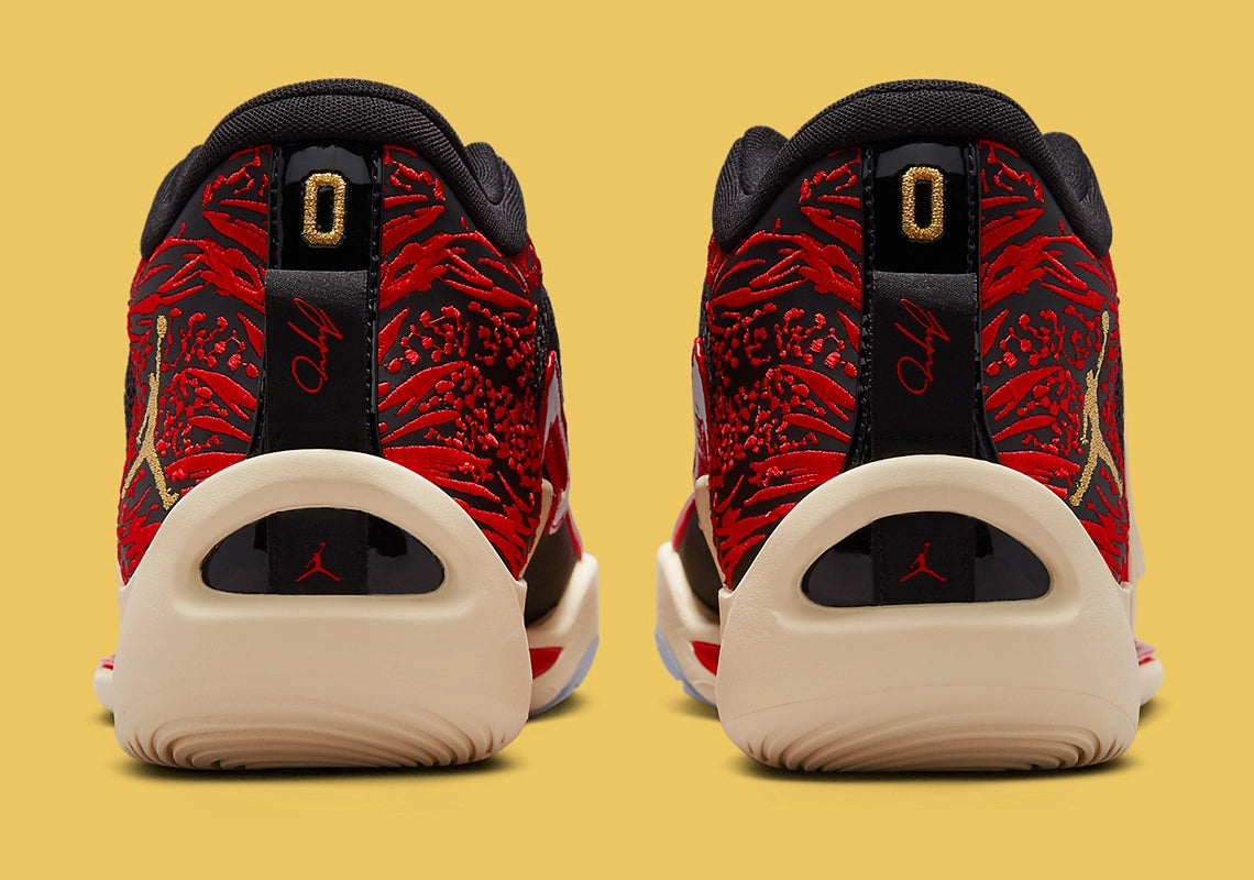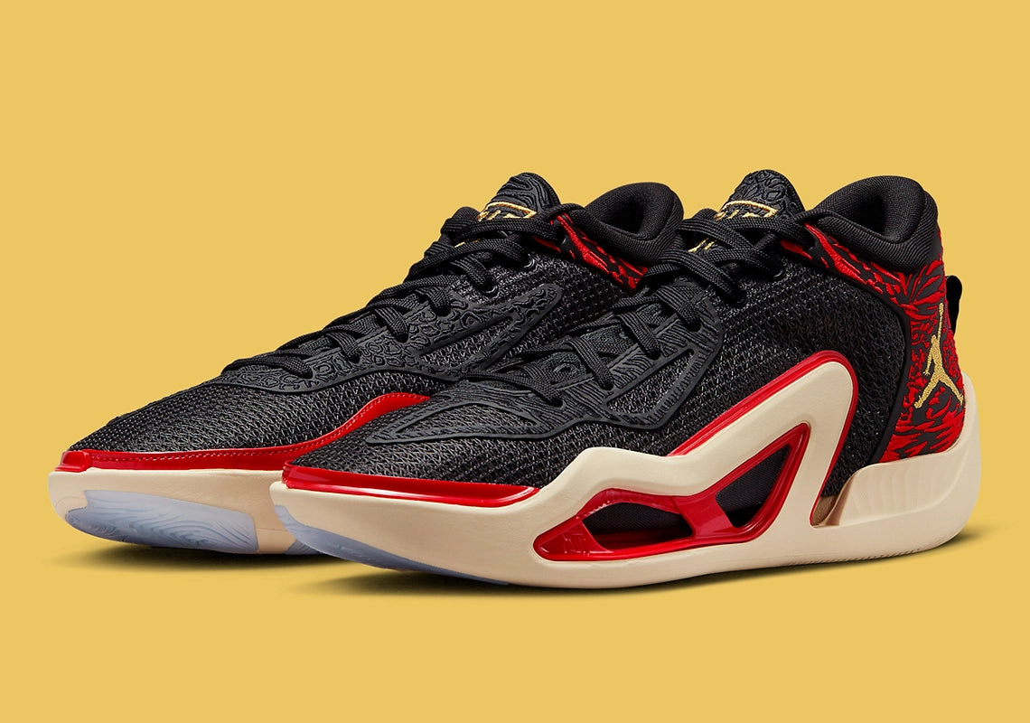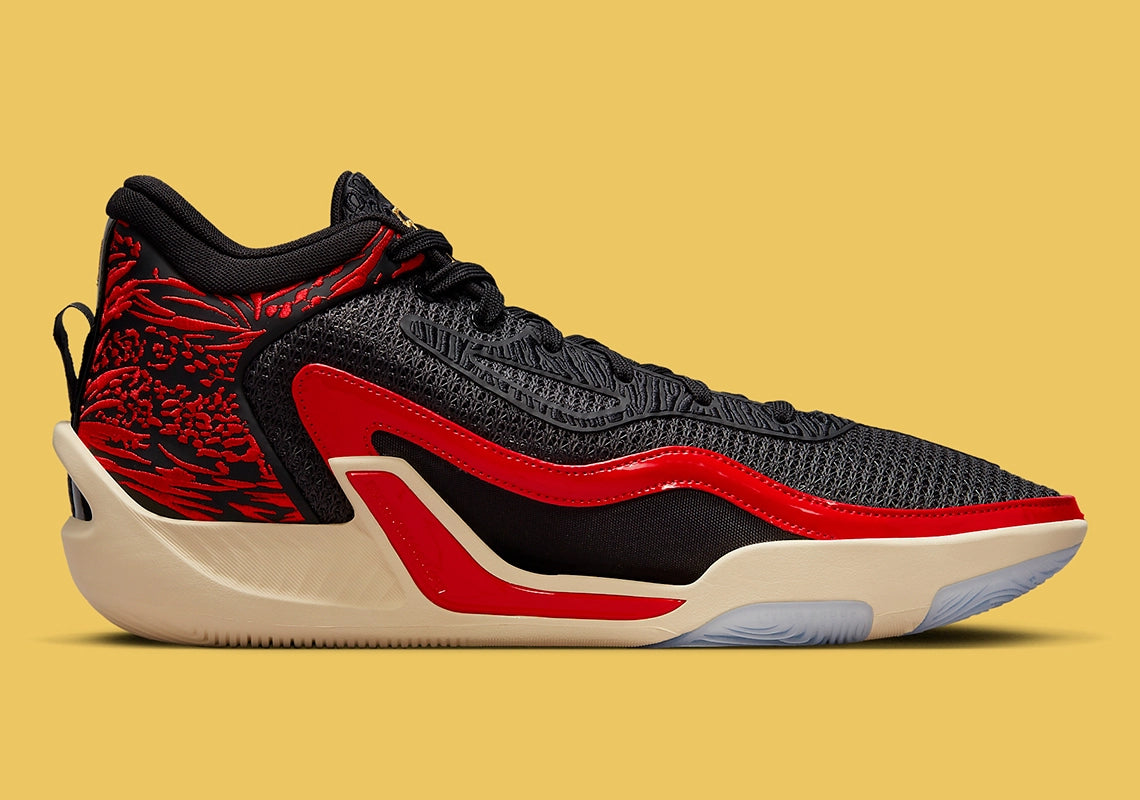 The signature shoe is currently their lightest performance shoe to date, boasting a lightweight, reinforced TPU frame that helps keep materials to a minimum. A mesh knit upper is layered onto the foundational base, here clad in a Bred-like colourway that conjures to mind images of Jumpman greats. And alongside an embroidered, red-highlighted heel pattern, the pair threads its Jumpman and Jayson Tatum logo in a light gold tone, loosely complementing the sole unit below.